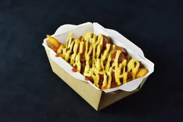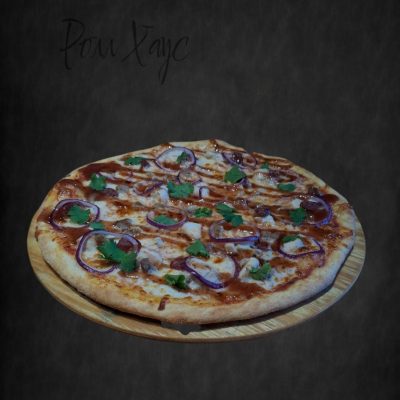 Соус белый,сыр моцарелла,курица,грибы шампиньоны,перец болгарский ,помидор,огурцы маринованные,морковь по корейски